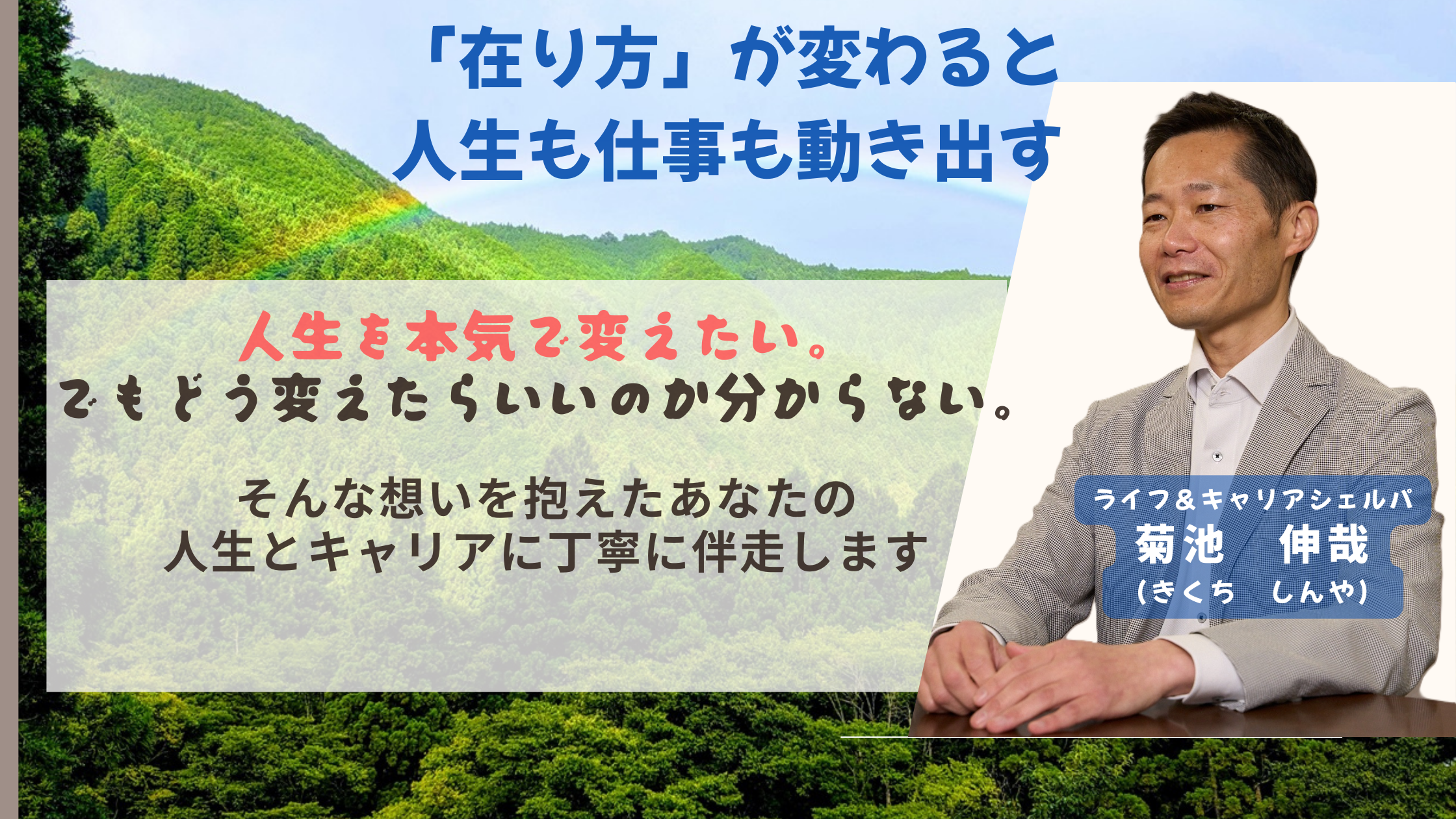 愛媛県松山市で、「在り方と行動をつなぐ専門家」ライフ&キャリアシェルパとして活動しています、菊池伸哉(きくち・しんや)と申します。
